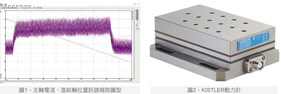 圖2為瑞士KISTLER的9257B通用動力計,結構設計以確保可精確測量動態力和使熱效應影響達最小;精確測量之切削力訊號可用於刀具、刀把夾緊系統和潤滑改善,監控加工製程中刀具狀態的即時變化,且作為診斷工具來分析和優化切削製程規劃。