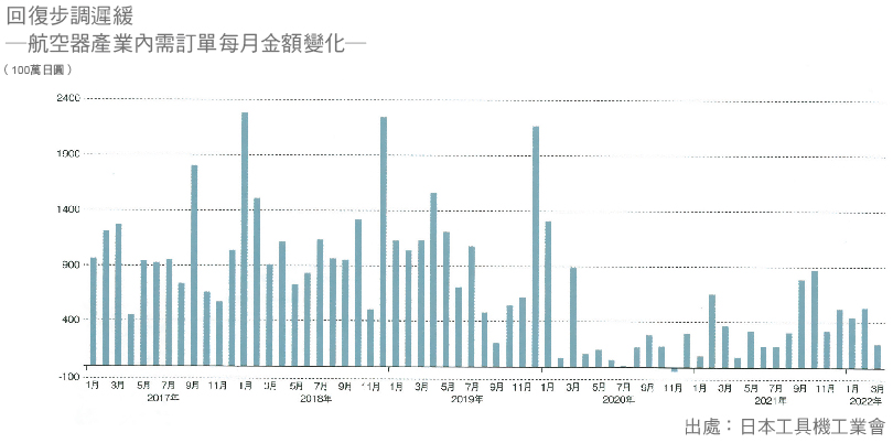 至於航空器產業的主要市場美國最近則開始傳出佳音,某中型工具機製造商的業務便透露引擎周邊產品出現了需求。牧野銑床製作所也在2022年3月期的決算短信中提到「引擎、國防、太空領域的美國航空器訂單可望增加。」