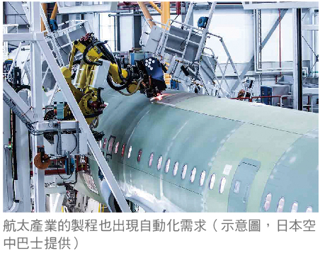 航太產業的主流是少量多樣化生產,而且對於品管及溯源性有嚴格要求,某些零件還需要難削材的加工技術。航太產業同樣無法迴避人力不足的困境,製程的自動化成了緊要課題。也因為這樣,對工廠自動化機械的使用者與製造商雙方而言,都是有機會創造巨大商機的市場。