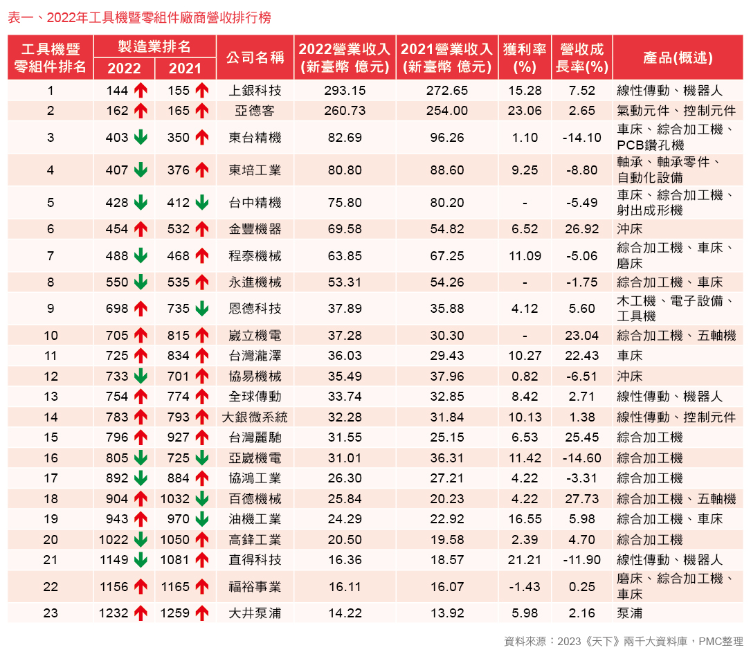 天下雜誌2000大企業調查 2022年工具機產業在逆風中站穩 腳步、攜手突圍