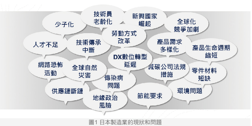 現今的社會,充斥著因勞動人口的減少、 產業高齡化、技術傳承的延遲、數位化應用 的需求、環境永續的社會責任等問題,各行 各業都快速地發生了改變,製造業也不例外。衍伸的問題諸如:因少子化造成的作業 人力不足、人員無法有足夠的時間以傳統的 方式累積經驗;少量多樣的需求造成頻繁的 開發新製程以及刀具、夾具的更換;因減碳 造成的廠房運作成本提高等等,維持作業現 場的正常運作以及獲利皆面臨著挑戰。